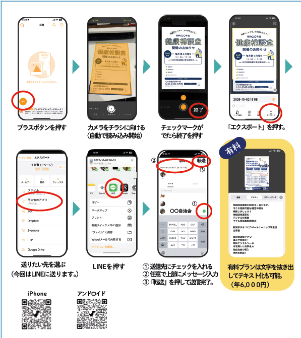 スマホ内のフォルダにPDF化したファイルを保存することもできますし、そのままLINEなどで送ることもできます。